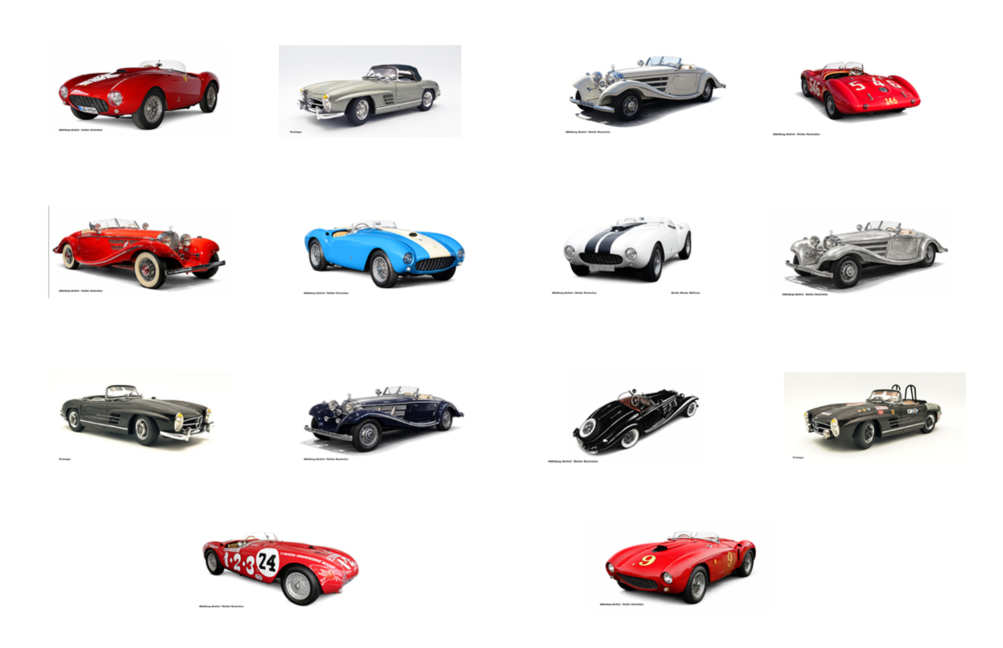 For Ferrari enthusiasts, we are introducing the Ferrari 375 MM Pininfarina in six different variants. Another highlight is the classic Mercedes-Benz 500 K Special Roadster, which will be released in five variants.